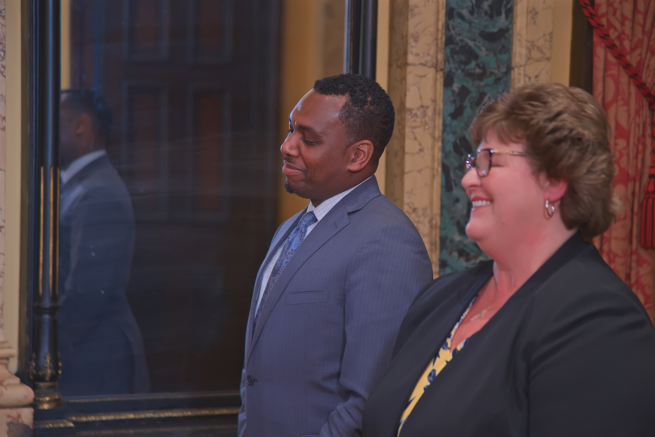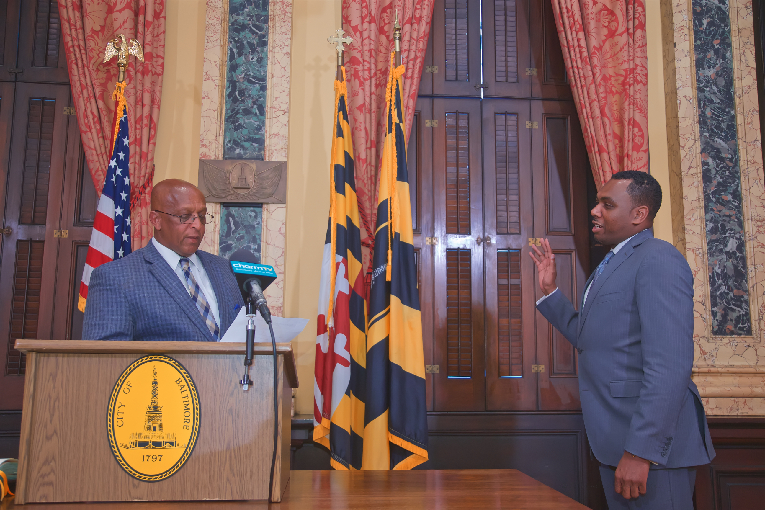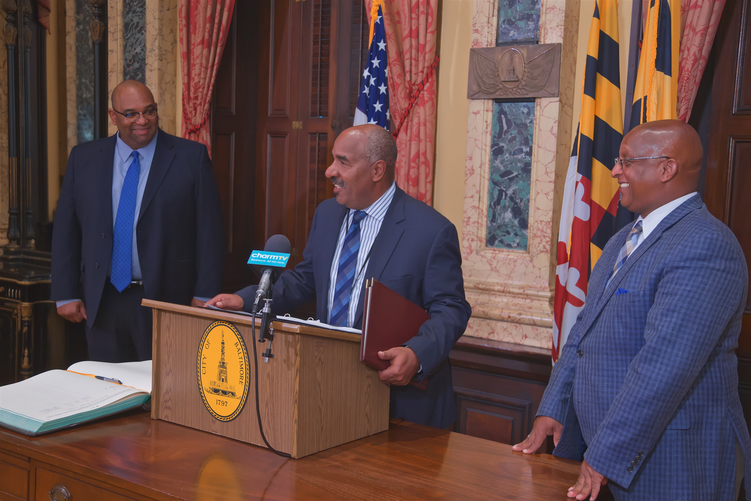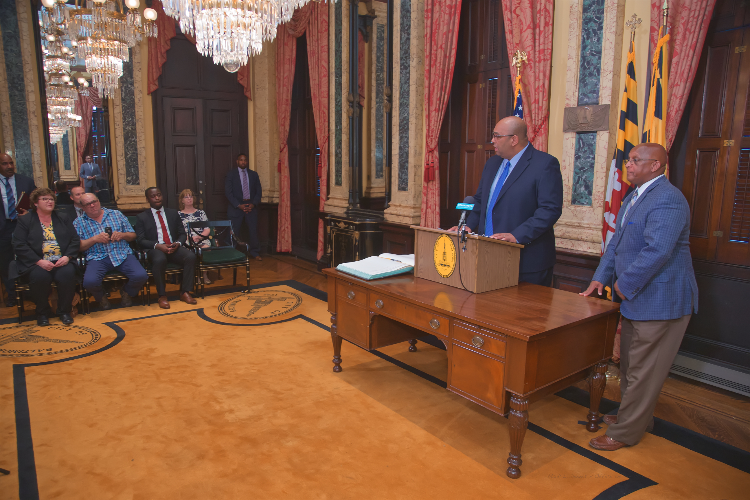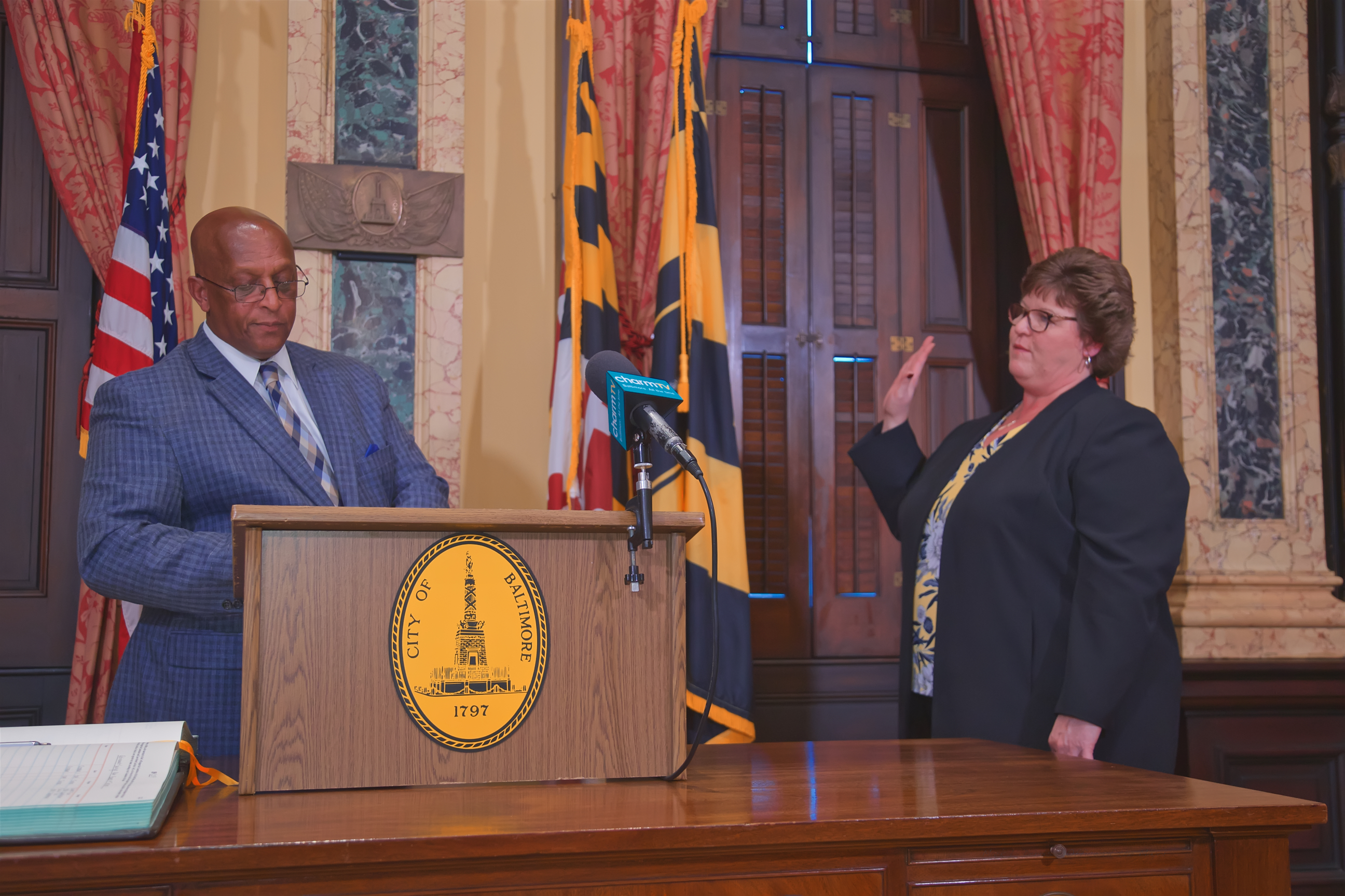 Connie A. Bosse, BCPS Payroll Director, and Charles A. Hall, Jr., BCPS Director of Employee Engagement, were officially named to the Retirement Savings Plan Board of Trustees on October 1, 2019. Both BCPS CEO Designees were sworn in by Mayor Young with a ceremony at City Hall. Photos from the event were taken by Mark Dennis, City Photographer.